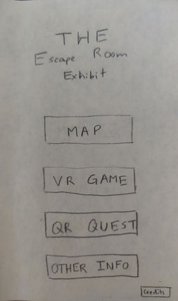 This is a paper-prototype for the exhibit's kiosk. The designs are similar to the concept app because both the app and the kiosk serve similar purposes. The main difference between the app and the kiosk is that the app has the functionality to play QR Quest, since the game requires a camera to scan the hidden QR codes.